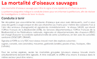 AVERTISSEMENT Influenza aviaire hautement pathogène (IAHP)